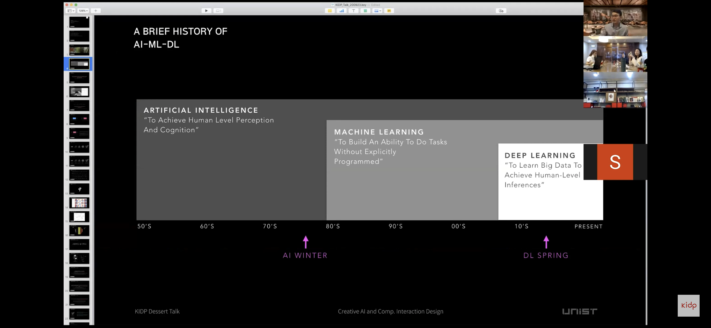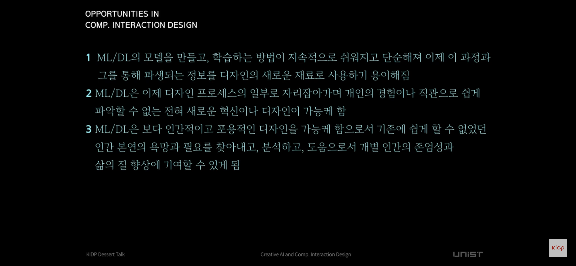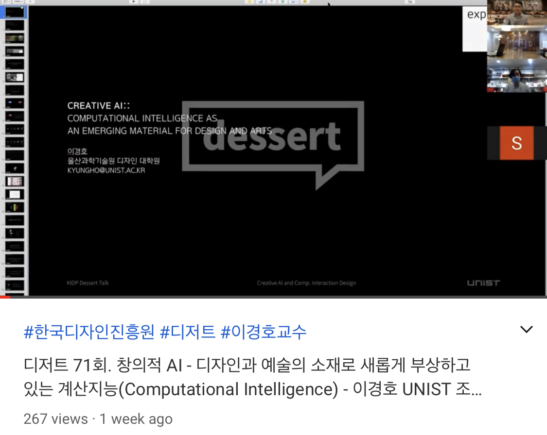 안녕하세요. 오랫만에 디저트 강연을 듣고 왔습니다. 평소 AI 나 머신러닝은 관심은 희미 하게 있지만, 자세한 지식이 없었습니다. 워낙 어려운 분야이기도 하고 디자인과 연관지어 생각하기가 조금 어려 웠었는데요,